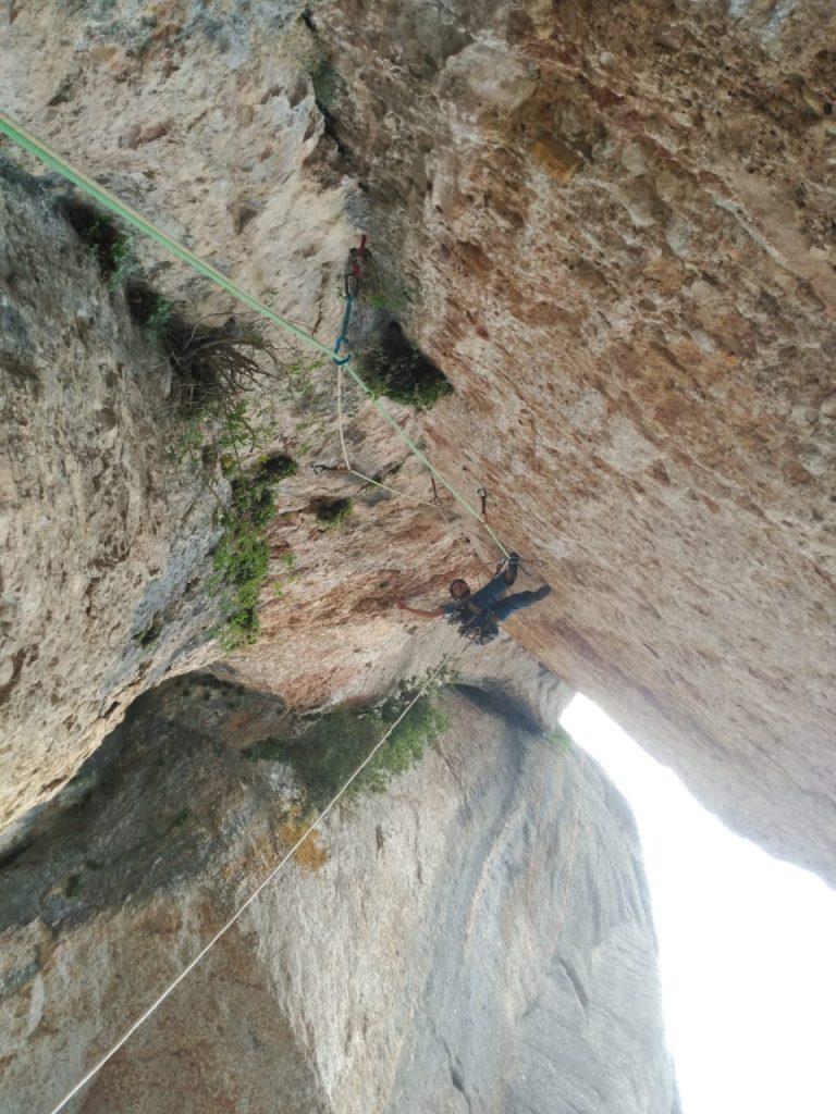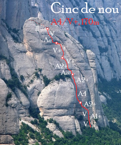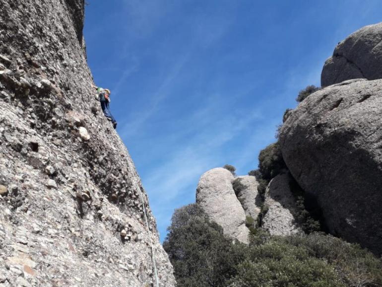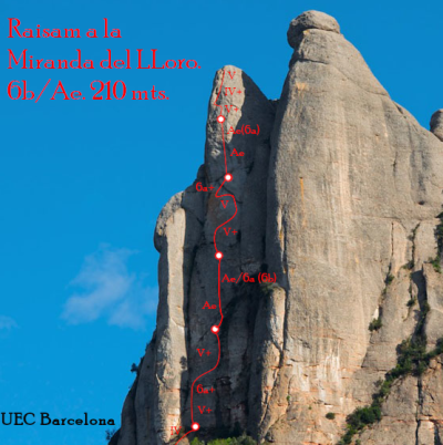 L1: La via comença per un diedre bastant fàcil (V) que ens servirà per anar escalfant motors. Trobarem dues sabines, un clau, i bons emplaçaments per les proteccions.