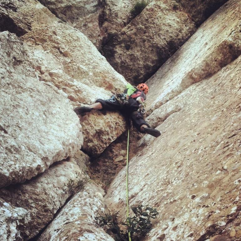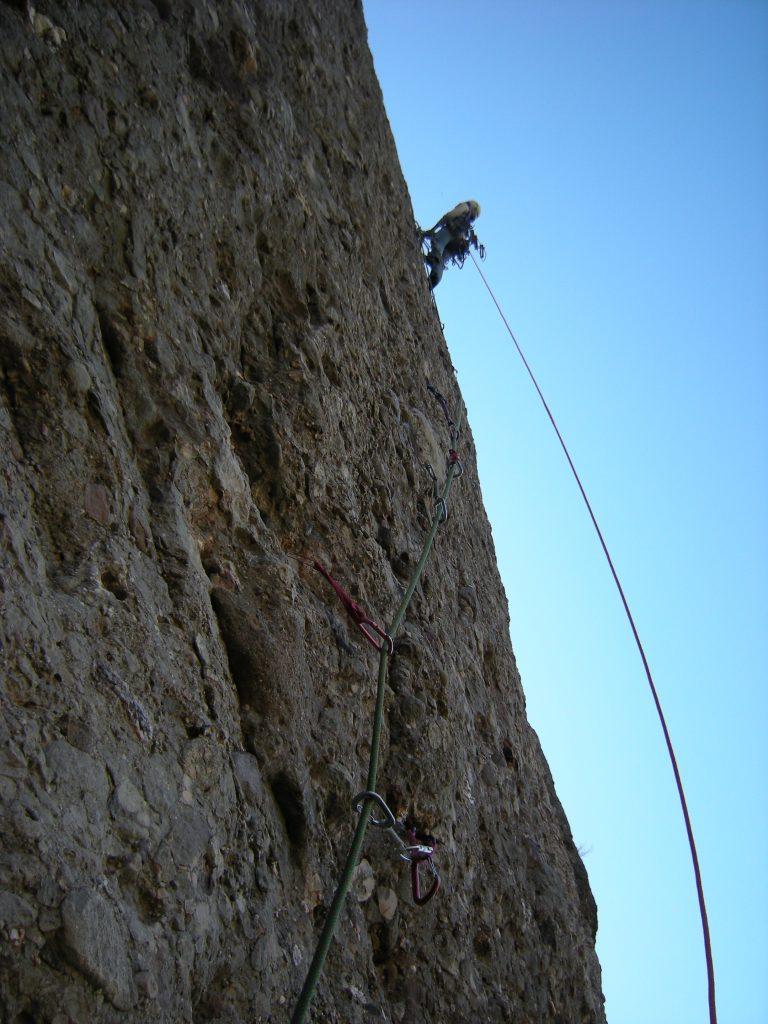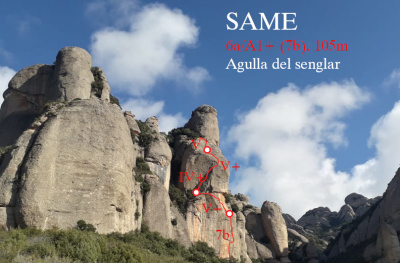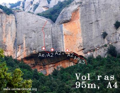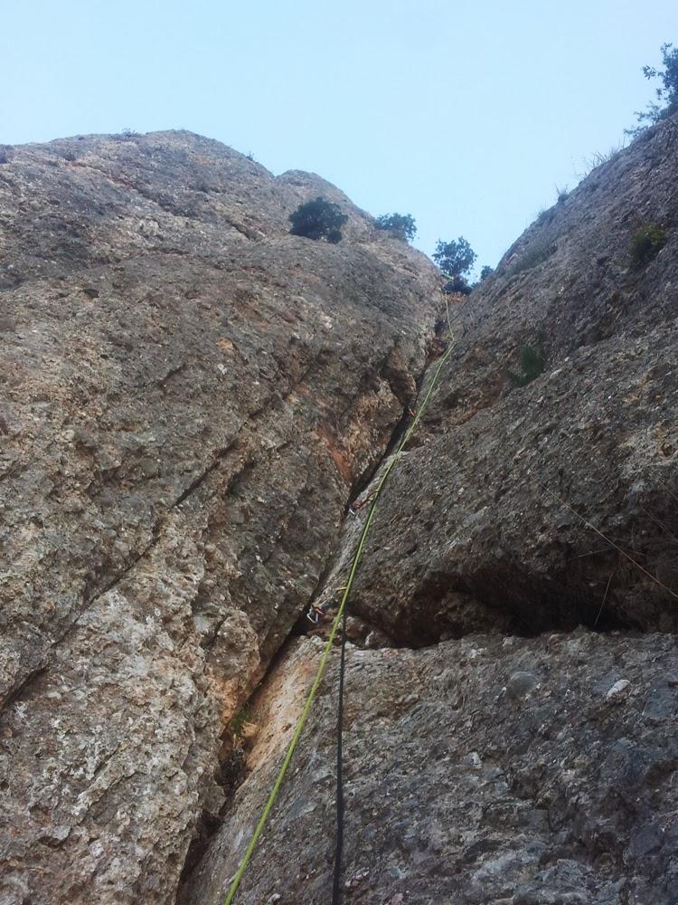 L3: Llarg curt d'uns 15 metres, força curiós. Començarem amb una petita travessia a la dreta (IV) fins trobar un primer clau, a partir d'aquí remuntarem la fissura mig per dins, mig per fora i amb alguna mà a la placa fins arribar a un primer clau, seguidament trobarem un taco de fusta (V+/6a). Uns petits passets cap a al dreta per la placa i ja serem a la reunió.