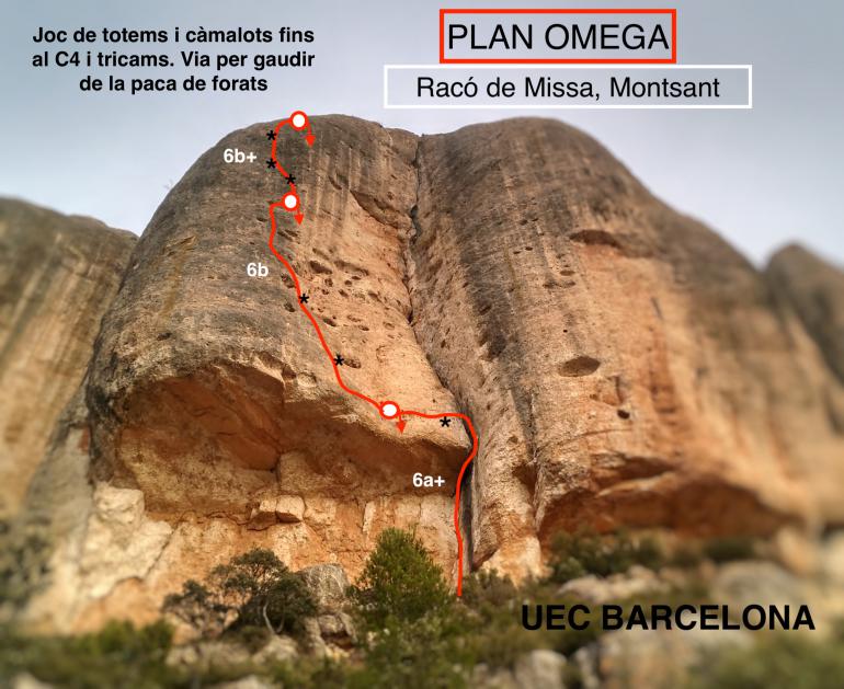 Després d'haver fet esportiva al Racó de Missa i de gaudir de metres i metres de plaques verticals plenes de forats ens va arribar la ressenya de la Plan Omega. Una via de l'Ester Sabadell i l'Albert Salvadó.